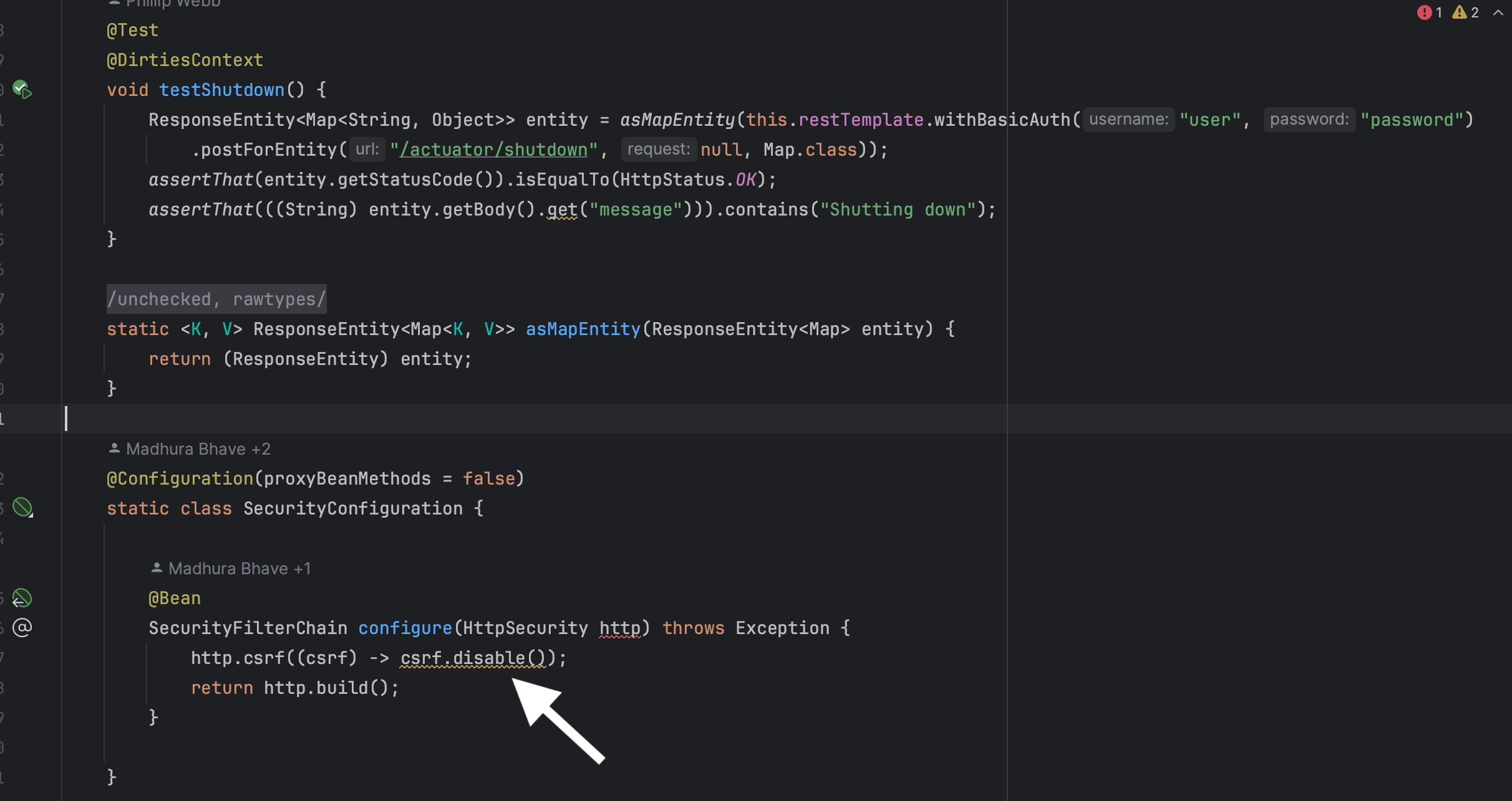 Our initial attempts to cover the first target with test cases resulted in multiple failures. Specifically, we encountered a 401 Unauthorized status instead of the expected 200 OK. Upon reviewing the debug logs, we discovered that Spring Security’s CSRF (Cross-site request forgery) protection was blocking the POST requests.