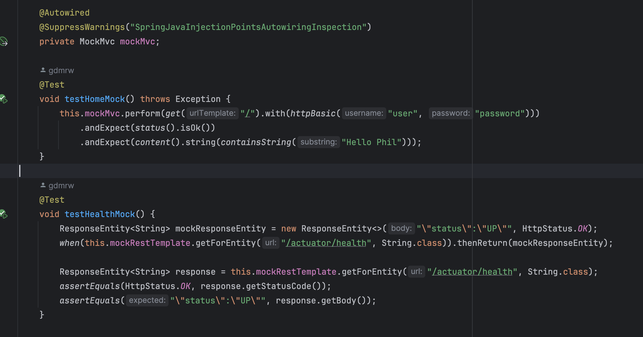 The first one interacts directly with the spring boot controller, constructs an http request, and verifies the response status code